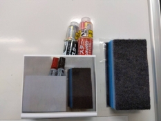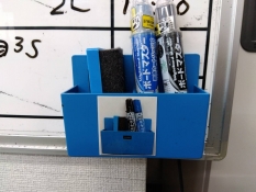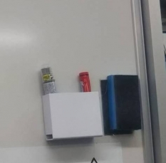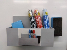 マーカーBOXにマーカーとイレザーの適正数量を写真で表示することで、マーカーを探したり、多すぎて収まり切れないことを防ぐ。使ったら元に戻す習慣を。