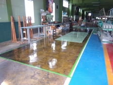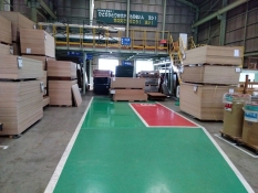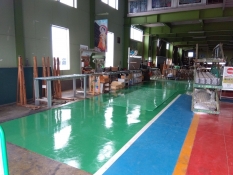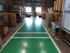 今回も、社長と社員全員で、工場作業をより良く行えるように話し合い、作業場エリアや安全通路を決めて、全社員で工場の床塗装をしました。