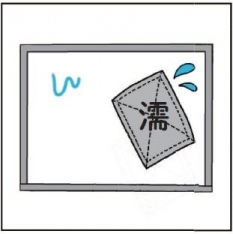 綺麗な布を綺麗な水に浸し、よく絞り、白板面を水拭きしてください。