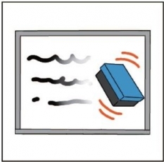 - 白面板にイレーザーを斜め45度の角度で当て、キープする