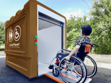 ※車いすやベビーカーで入室する場合は車いすMobiRestの仕様(電動シャッターとアルミ製スロープ付き)となります。