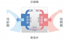 冷風扇に用いられる直接気化冷却に、間接気化冷却を組み合わせて涼しさをUP。ダブルで冷やすため、体感温度が低下します。一般的なスポットクーラーのようにコンプレッサーを使わず、気化現象を利用した冷却方式のため、排熱が出ません。