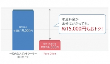 年間のランニングコストは約4,300円※4。一般的なスポットクーラーと比べて、使用電力量やランニングコストを大幅に削減。CO2削減にも貢献します。